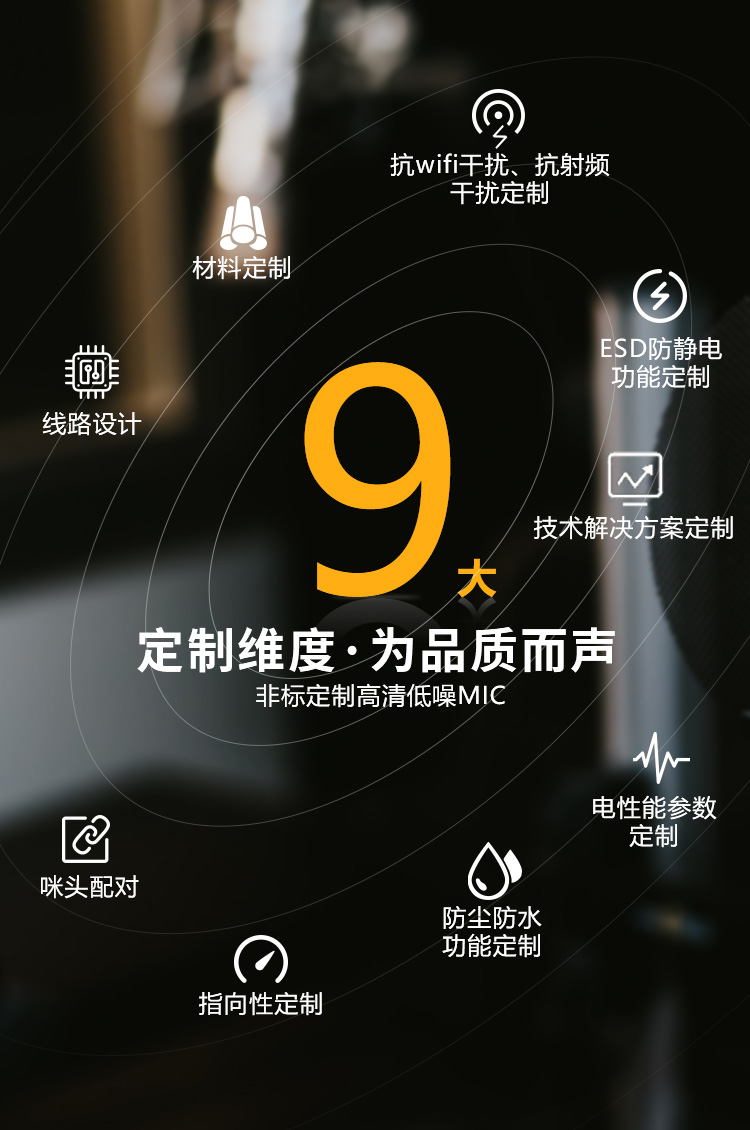 ●提供材料、电性能参数、指向性、防尘防水功能、ESD防静电功能定制方案